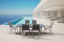 KETTLER Cubic/Altura Esstischgarnitur, Anthrazit, Alu/HPL/Textilene, 140/210×70 Cm, 6 Stapelsessel