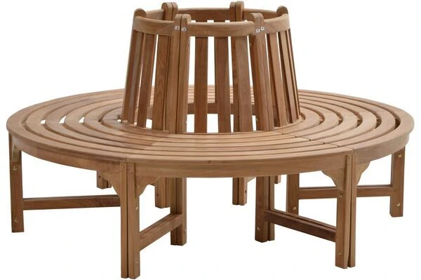 6-teilige ganze Baumbank aus Teakholz in zwei verschiedenen Größen
