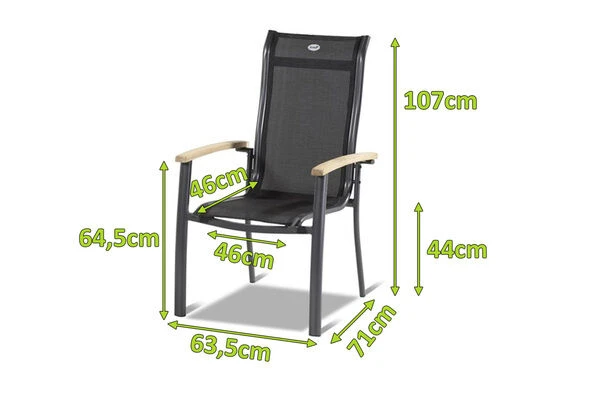 1x HARTMAN Alice Stapelsessel, xerix/schwarz, Alu/4×4 Textilen, mit FSC Teak-Armlehne (65292010)