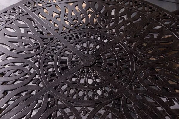Das Set ist komplett gefertigt aus hochwertigem Aluminium-Guss, was es sehr robust und wetterresistent macht. Dadurch eignet es sich ideal für den Außenbereich und kann unbesorgt das ganze Jahr über im Freien stehen bleiben. Die Möbel sind in einem schönen Bronzeton gehalten und bietet Ihnen den höchsten Standard an Qualität und Verarbeitung.