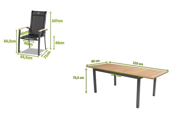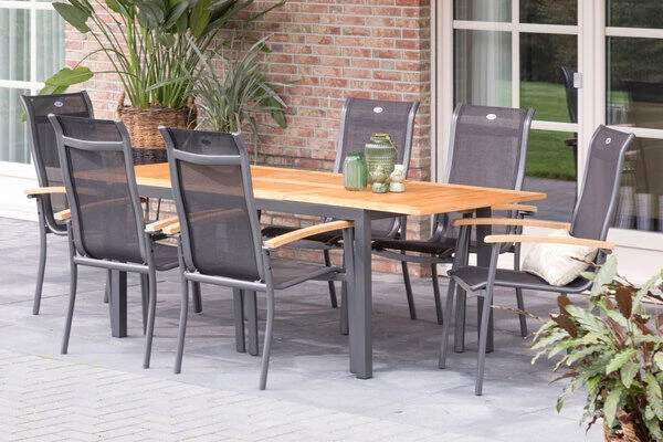 HARTMAN Gartenmöbel-Set, xerix-anthrazit, Alu/Teakholz, 4×4 Textilen, 210/150×90 cm, 6 Personen