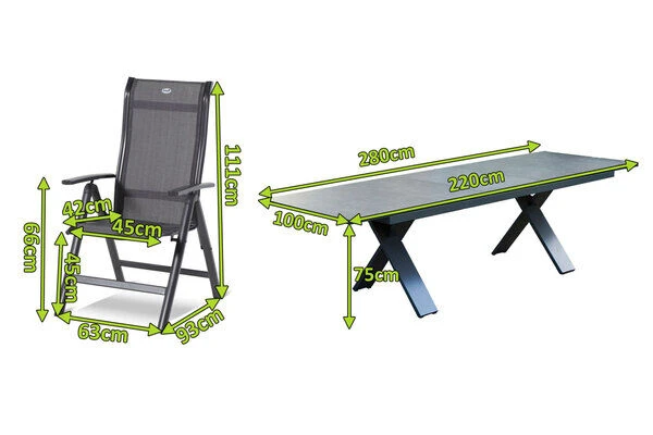 Der Tisch mit dem gekreuzten Gestell ist gefertigt aus pulverbeschichtetem Aluminium in der Farbe Xerix (Anthrazit) und wird optisch perfekt durch die Glaskeramik-Tischplatte, ebenfalls in der Farbe Xerix ergänzt. Die Maße von ca. 220 x 100 x 75 cm sorgen dafür, dass stets ausreichend Ablagefläche zur Verfügung steht. Bei Bedarf kann der Tisch auf eine Länge von ca. 280 cm ausgezogen werden, so finden bequem auch große Runden genügend Platz in Ihrem Garten. Dank der Ausziehfunktion hebt sich dieses Modell von den üblichen Tischen der Xanadu Serie ab – den Ausziehtisch erhalten Sie exklusiv bei uns.