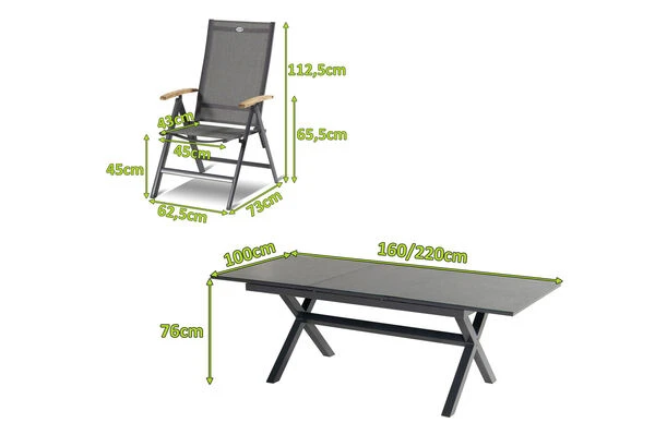 Hartman Esstischgarnitur mit Xanadu Ausziehtisch aus Alu und 6 Multipositionssessel aus der Serie „Aruba“