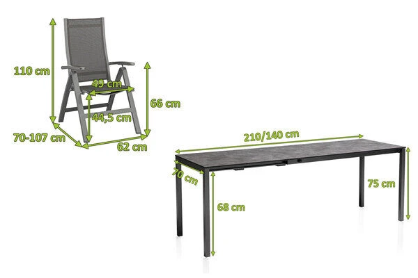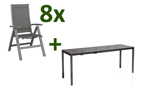 KETTLER Cubic/Altura Esstischgarnitur, anthrazit, Alu/HPL/Textilene, ca. 140/210×70 cm, 8 Multipos