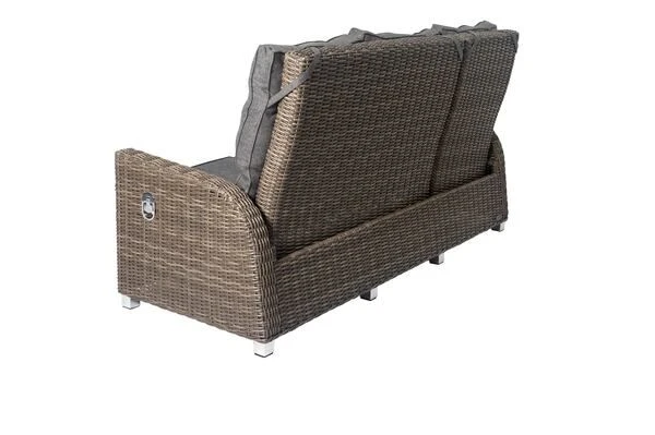 Dieses gemütliche Diningsofa ist wahrlich ein Verwandlungskünstler. Hier können Sie gemütlich mit einem guten Buch in der Sonne liegen oder aber auch ganz bequem Ihr Mittag- oder Abendessen zu sich nehmen. Hierzu brauchen Sie einfach nur Platz zu nehmen und die Rückenlehnen problemlos in eine bequeme Liege- oder Sitzposition einstellen. Dies gelingt kinderleicht dank der integrierten Gasdruckfedern – die Rückenlehnen können mit einem kleinen Hebel an der Seite stufenlos verstellt werden. Außerdem lässt sich die Sitzfläche einseitig 5-fach verstellen, sodass eine perfekte Liegeposition entsteht. Das Sofa hat ein Gesamtmaß von ca. 210 x 83 x 110 cm. Die Sitzfläche ist ca. 60 cm tief, die Sitzhöhe mit Kissen liegt bei ca. 49 cm. Die Armlehnen mit einer Höhe von ca. 67 cm sorgen bei diesem Sessel für besonderen Komfort.