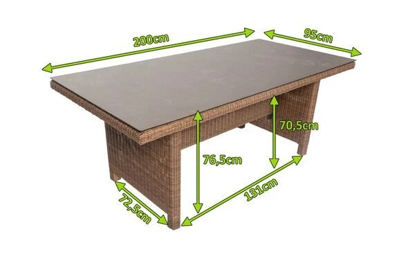 Polyrattan Esstisch von OUTFLEXX® in hellbraun, ca. 200 x 95 x 76,5 cm