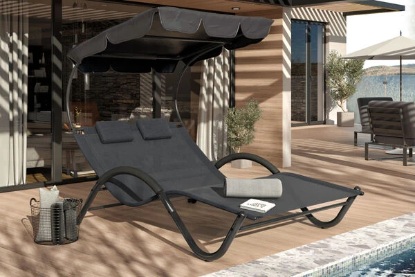 Rollbare und praktische Sonnenliege für zwei Personen von OUTFLEXX® in anthrazit