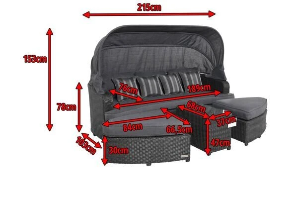 OUTFLEXX Houston Loungebett, Grau, Polyrattan, Doppel-halbrund, Viele Stellmöglichkeiten, Dach Klappbar