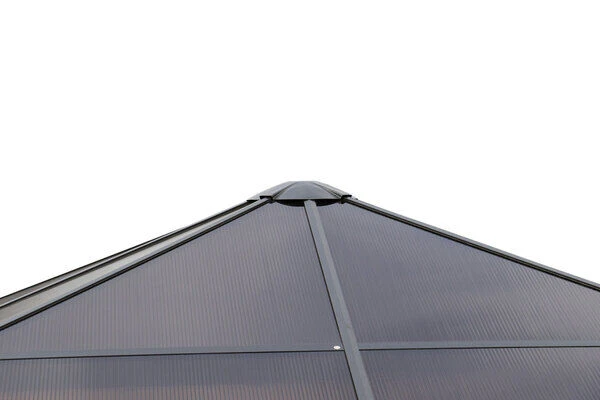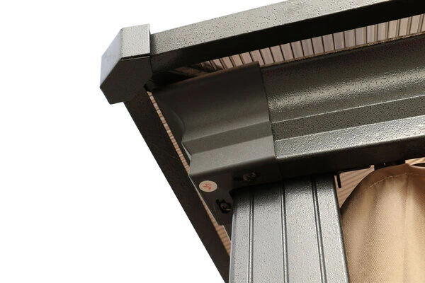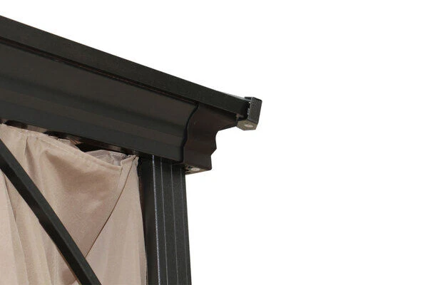 Dieser Profi Hardtop Pavillon bietet Ihnen mit seinem Dach aus 7 mm getönten Polycarbonatplatten einen zuverlässigen Schutz vor Sonne, Regen und Insekten. Die Seitenteile bestehen aus strapazierfähigem Polyester in einem Braunton und können bei Bedarf geschlossen werden. So sind sie bestens vor Zugluft geschützt und können auch an kühleren Sommerabenden noch gemeinsam mit Familie und Freunden im Garten sitzen.