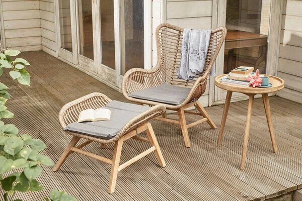 OUTFLEXX Sessel, Rattan Grey, Polyrattan/Akazie, 79,5 X 71,5 X 90 Cm, Inkl. Hocker Und Polster In Braun