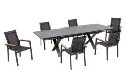 OUTFLEXX Esstischgarnitur, Silber, Edelstahl / FSC-Teakholz, Tisch 90 X 90 Cm, 4 Stapelsessel