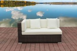 OUTFLEXX 2-Sitzer Ecksofa, Schwarz, Polyrattan, 145x85x70cm, Armlehne Links, Wasserfeste Kissenbox
