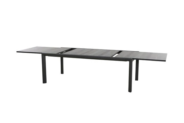 1x SIENA GARDEN Kingston Ausziehtisch, matt graphit/woodlook, Alu/Keramik/Glas, 220/340×108 cm