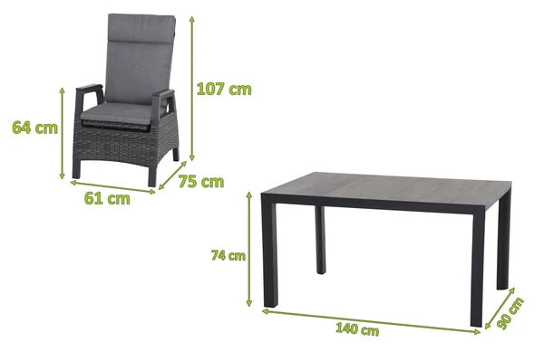 | Rostfreies Aluminiumgestell Der pulverbeschichtete Aluminiumrahmen ist rostfrei, korrosionsbeständig und daher sicher vor vorzeitiger Verwitterung. Deshalb sitzen Sie sehr stabil und haben lange Freude an Ihren neuen Möbelstücken. | |
