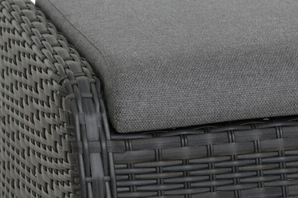 Bei Wind und Wetter sorgt die Witterungsbeständigkeit und Pflegeleichtigkeit der verwendeten Materialien für den nötigen Schutz. Das Untergestell des Sessels und des Hockers besteht aus pulverbeschichtetem Aluminium, und ist stabil sowie widerstandsfähig. Aufgrund des geringen Gewichts (Sessel ca. 13 kg und Hocker ca. 4,2 kg) lassen sich die Möbelstücke auch schnell an Ihren Lieblingsplätzen im Garten, auf der Terrasse oder auf dem Balkon platzieren. Das Aluminiumgestell wird mit halbrundem GARDINO®-Geflecht aus Polyethylen bespannt. Diese Faser trocknet besonders schnell, ist schmutzunempfindlich und erzeugt mit ihrer natürlichen Optik einen edlen und modernen Look, der jeder Gartengestaltung ein besonderes Flair verleiht. Die gemütlichen und pflegeleichten Sitzpolster sind farblich passend auf das Geflecht abgestimmt. Bei Verschmutzung sind die Bezüge des Sessels leicht zu reinigen – bitte beachten Sie, dass das Kopfteil des Sessels nicht abnehmbar ist. Wir empfehlen dieses vorsichtig per Hand zu waschen.