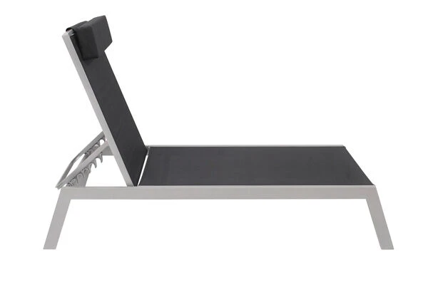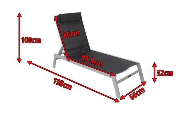 VILLANA Gartenliege, Silber/schwarz, Aluminium/Textil, 198 X 60 X 32 Cm, Verstellbar